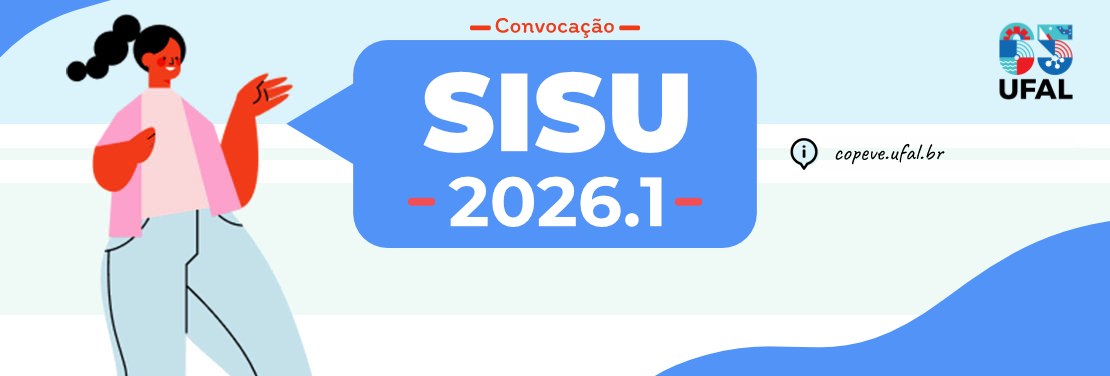 03/02/2026 Egressa da Ufal é aprovada em três doutorados simultaneamente 03/02/2026 Ufal convoca 5.358 classificados do Sisu 2026.1 para pré-matrícula 02/02/2026 Projeto de Arquitetura sobre prédio histórico repercute no exterior 02/02/2026 Censo da Pós-Graduação da Capes deve ser respondido até 26 de fevereiro 29/01/2026 Copeve divulga calendário de convocação para aprovados no Sisu Ufal 2026 28/01/2026 Estudantes da Ufal participam de curso de verão sobre Psicobiologia na USP