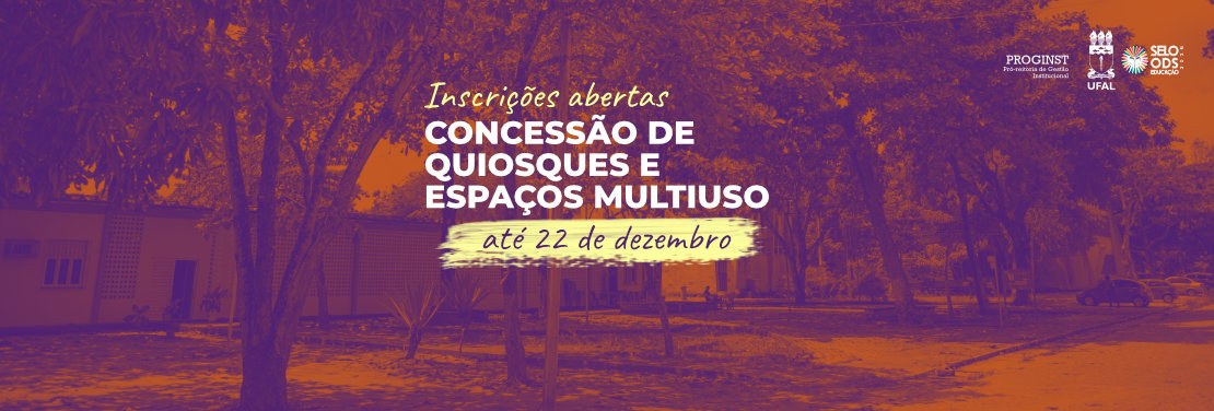 10/12/2025 Ufal abre chamada pública para ocupação de quiosques e espaços 05/12/2025 Cônsul-geral dos EUA visita Ufal e busca ampliar colaboração 05/12/2025 Legado na educação: Ufal comemora 70 anos do curso de Pedagogia 03/12/2025 Seminário debaterá heranças da escravidão, neoliberalismo e direitos sociais 03/12/2025 Gestão da Ufal, Adufal e Sintufal pedem ao TCU suspensão do corte da URP 02/12/2025 Aposição de placa na Reitoria da Ufal marcará a Semana dos Direitos Humanos